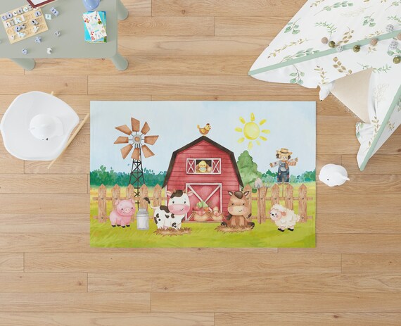 Farm Animals Rug Barnyard Nursery Decor Kids Play Room Rug Gender Neutral Mof Etsy Uk